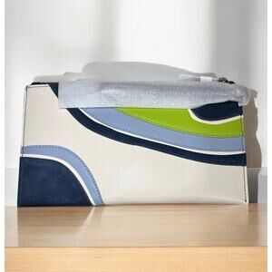 This New With Tags Michael Kors Jet Set Travel Large Patchwork Wristlet is just gorgeous! Featuring a 70’s inspired blue and green motif with silver hardware, this large wristlet is perfect when you want to travel light or use with another bag as a pouch or wallet. If you love the style and quality of Michael Kors and fun, vibrant prints, you need this wristlet in your collection!