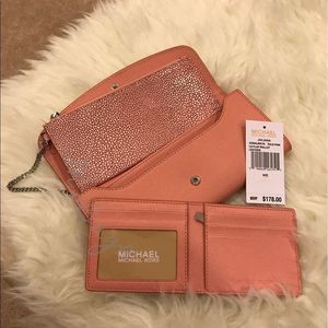 NWT Michael Kors Juliana 3 in 1 Flap Long Wallet Pink/silver