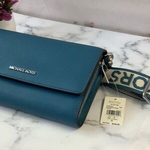 Adjustable web shoulder strap with leather trim measures 1 3/4" X 32"
