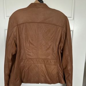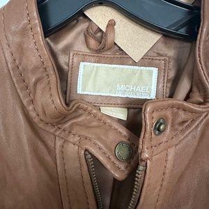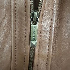 Beautiful tan leather MK jacket perfect for the cold weather and a night out! You’ll turn heads wearing this piece out and about!
