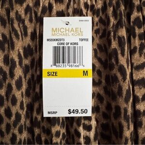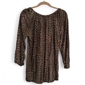 Michael Kors leopard top, Michael Kors animal print blouse, Michael Kors brown black top, statement print blouse, chic leopard print shirt, Michael Kors medium size top, scoop neck leopard blouse, bold animal print fashion, affordable luxury blouse, versatile animal print top, fall winter fashion staple, chic Michael Kors blouse, lightweight animal print top, office casual statement blouse, date night top, vacation, travel, dinner outfit, loose fit