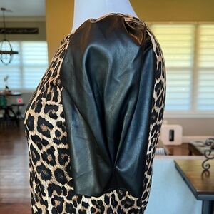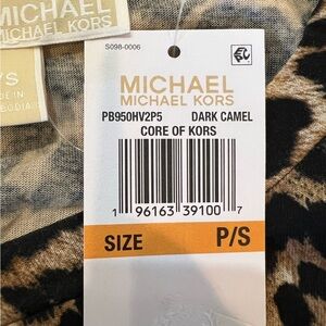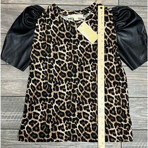 NWT Michael Kors Leopard Print Vegan Faux Leather Sleeve Top Shirt P/S Small