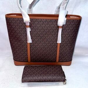 NWT Michael Kors MK Jet Set Travel Large Logo Tote Bag & Continental Wristlet