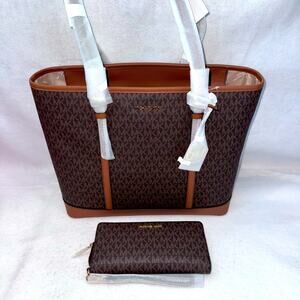 NWT Michael Kors MK Jet Set Travel Large Logo Tote Bag & Continental Wristlet