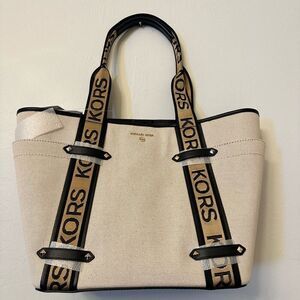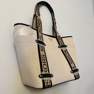 NWT Michael Kors Maeve Canvas Magnetic Snap Tote Shoulder Bag Cream Large