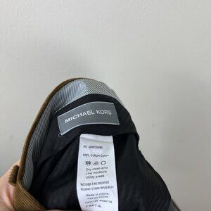 NWT Michael Kors Men Vicuna Brown Modern Fit Corduroy Dress Pants. Straight leg. Pockets. Zip fly button closure. Office, workwear, dress pants, classic, preppy. 100% cotton. Retail: $95. Size 36x34. Waist: 17.5" across. Rise: 11.5". Inseam: 34". (126)