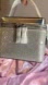 Stylish mini bag with a metallic silver finish. Perfect for adding a touch of elegance to any outfit. Features a sleek design with signature branding.