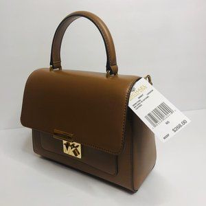 NWT Michael Kors MINDY Small Leather Convertible BROWN Top Handle Satchel Crossbody