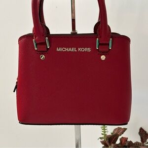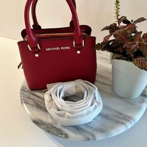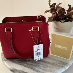 NWT Michael Kors Mini Red Scarlet Savannah Saffiano LeatherTop Double Handle Bag