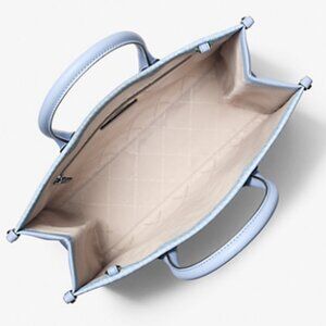 Stylish tote with a gradient blue and white monogram design. Features dual handles and a detachable strap. Iconic Michael Kors logo on the front. New with Tags. Never used. Even more beautiful in person!! Light blue with white color way.