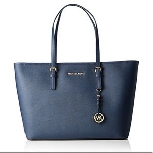 NWT Michael Kors Navy Jet Set Medium Leather Tote