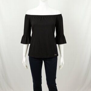 NWT Michael Kors Off-The-Shoulder Black Top XL Statement Sleeve Chic