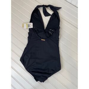 NWT Michael Kors One Piece Bathing Suit Black Twisted Front Plunged Neck Size XS