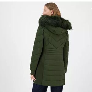 This stunning MICHAEL Kors cozy puffer coat has design in mind. A stand collar and zip-off hood with attached faux-fur trim and knit thumbhole cuffs keeping your hands warm and your fingers mobile.