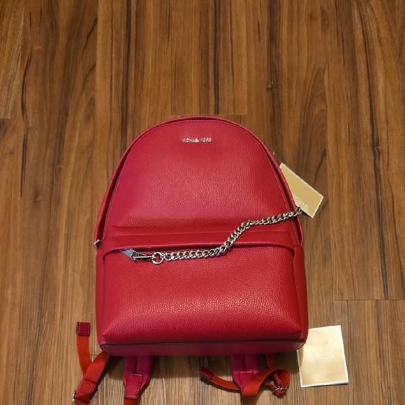 NWT Elegant medium Slater Michael Kors backpack in vibrant raspberry. Features a stylish chain detail. Perfect for everyday use.