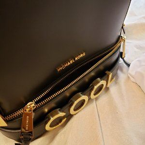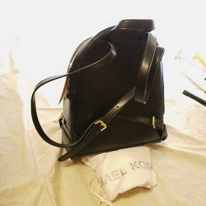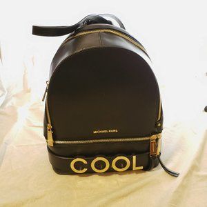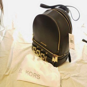 NWT Michael Kors Rhea Medium Leather Backpack. Color: Black. Authentic. 100% Leather. Gold hardware. Laid-back yet luxe, our Rhea backpack redefines big-city accessorizing. We love the 100% leather against the high-shine hardware. With its multiple zipper pockets and delicate shoulder straps, it’s a feminine take on an enduring design. 2" Drop. 8"-9" Adjustable Strap. Interior: One Padded iPad Pocket, One Zip Pocket, One Key Fob. Top Zip Fastening