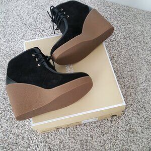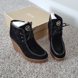 NWT Michael Kors Rye Suede Leather Wedge Ankle Boot Bootie Black 9