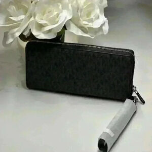 NWT Michael Kors Signature Coated Canvas and Leather Jet Set Travel Wallet