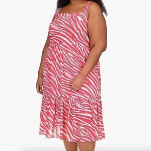NWT Michael Kors Soft Zebra Midi Dress 2X Straps Pink White Plus Size