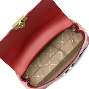 NWT ✅ Michael Kors TRIBECA Medium Quilted Top Handle Leather Satchel CRIMSON✨NWT