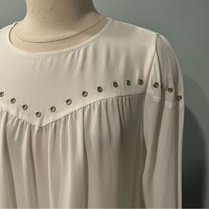 NWT Michael Kors White Crepe Long Sleeve Gold Eyelet Trim Blouse Size Small