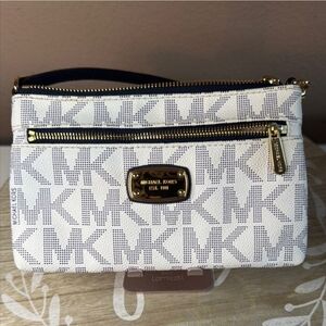 NWT!! Michael Kors White and Navy Jet Set Wristlet.