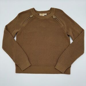 NWT Michael Kors Women’s Classic Cropped Sweater Double Zippers Dark Camel Small