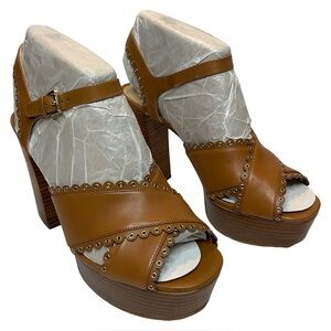 NWT Michael Kors Women's Jessie Scalloped Leather Platform Block Heel Sandals