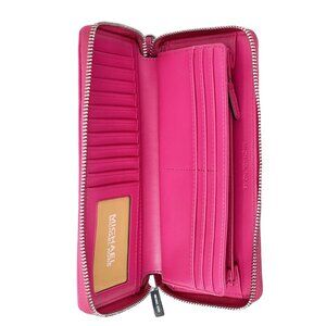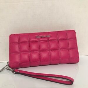 NWT Michael Kors Women's Large Quilted Vegan Leather Zip Around Wallet Pink