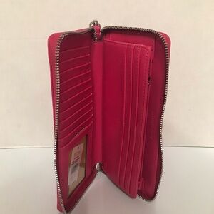 Style Tags: vegan leather, hot pink, feminine, Barbie, wallet, wristlet, card holder, MK, quilted, bright, faux leather, ethical fashion, sustainable, MK wallet, billfold, gift idea, leather wallet, quilted, michael michael kors wallet, full size wallet