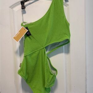 NWT Michael Kors Women's One-Shoulder Side-Cutout Swimsuit Apple Green size 14