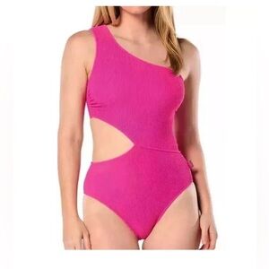NWT Michael Kors Women's One-Shoulder Side-Cutout Swimsuit Cerise size…12