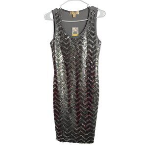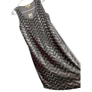 NWT Michael Kors Womens Sequin Chevron Tank Dress Gray Size M $200 Metalic 8474