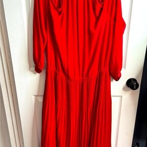 NWT Michael Kors XL Red Long Sleeve Cold Shoulder Dress; Vibrant, Avant Garde