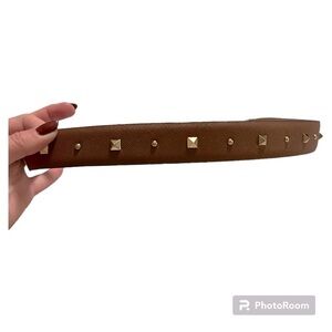NWT Michael Kors belt luggage/gold color size small. Gold studded detail with the MK logo for the buckle. Classic belt that can go with any outfit.