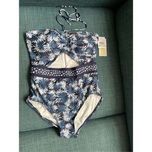 NWT Michael Kors woman’s Bathing Suit Palm-Cutout One-Piece New Navy size M