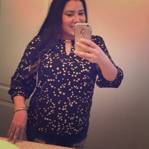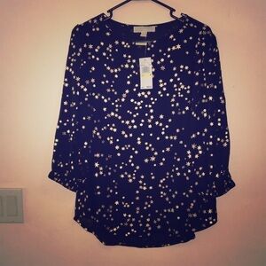 NWT Michael Kors Women’s Blouse!!! Beautiful with black with gold stars... cute little key hole accent gold piece on neckline