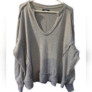 The pronounced detailing along the sleeves and back, as well as the neckline, the fan favorite thumbholes, the oversized fit (which allows you to wear something underneath- if you want(, the neutral color which goes with just about anything.. I am in absolute LOVE with this top! Watch the video and view all pictures!
