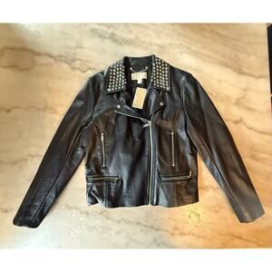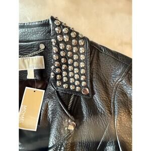 NWT Michael Kors women's faux leather cropped Moto Jacket. Large. Embellished with silver studs on the collar.