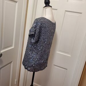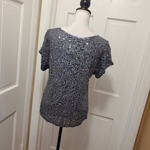 NWT Michael Michael Kors Gun Metal Metallic Sequin-Chiffon Top size XS $225