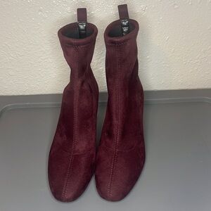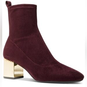 Brand New Never Worn Michael Michael Kors Porter Bootie In Merlot. Size 6 true to size. 2” heel. In excellent condition. No holes or stains. Smoke free home. Original box not included but I will wrap them in waterproof wrapping so they are not damaged during shipping and handling.