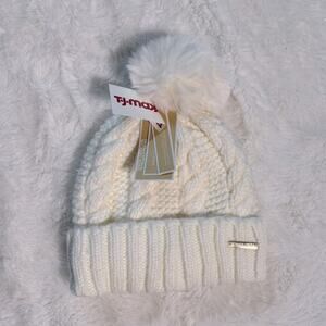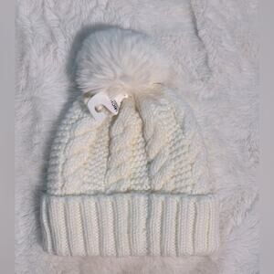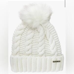 NWT - Michael Michael Kors - Women`s Cable Knit Teddy Fleece Faux Fur Pom Po…