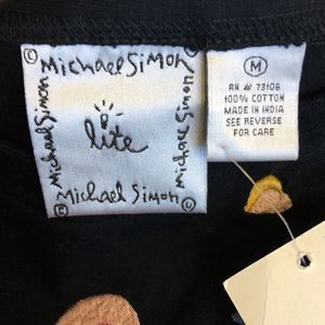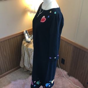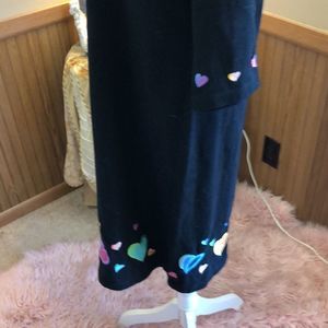 New Michael Simon lite Valentine’s Day black with colorful hearts on the top sleeves and around the bottom.