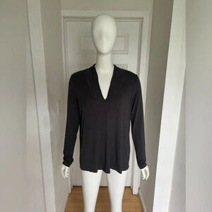 NWT Michael Stars Deep V-Neck Tee Top Oxide Gray One Size Jersey Long Sleeve