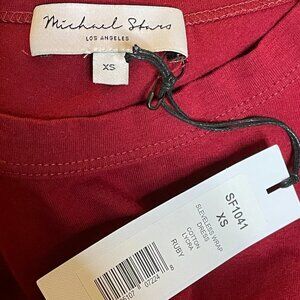 NWT Michael Stars Sleeveless Faux Wrap Front Knot Knit Mini Dress in Ruby Sz. XS