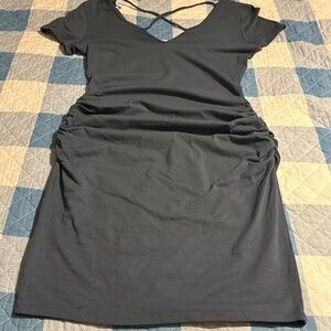 Michael Stars Women's Short Sleeve Vee Neck Dress with ruching on the sides,