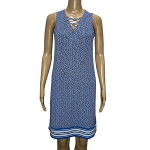 NWT Michael by Michael Kors Grecian Blue Cross V-Neck Tunic Knee Length Dress