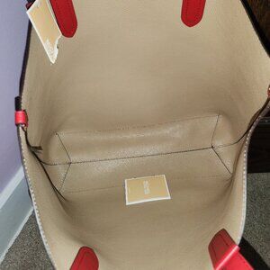 NWT Michael kors XL EW Eliza Crimson Reversible Textured Tote with Wrist-let