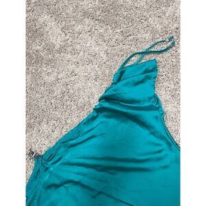 NWT Michael Kors Emerald Green Silver Hardware Strap Dolman Batwing Satin Blouse
