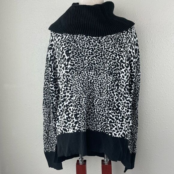 NWT Michael Kors Womens Black and White Animal Print Cowl Neck Sweater Size M